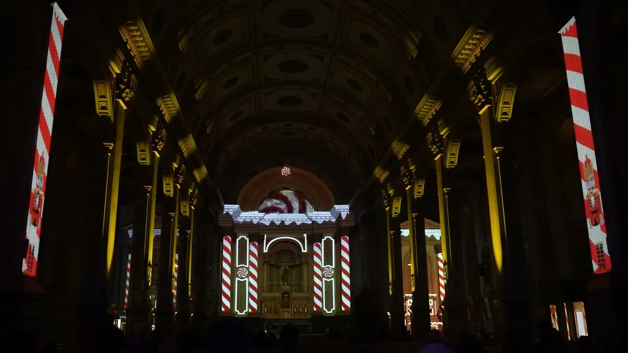 Lumières sur mon patrimoine was my very first large-scale mapping project with La Cargaison. Presented at Christmas 2023 in the Saint-Jean-l’Évangéliste Cathedral, this 17-minute immersive show used eight projectors to transform the architecture into a luminous work of art. I created a visual tableau for Ave Maria, performed by Dominica Merola — a moving and symbolic first step into the world of large-scale projection mapping.